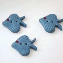 3 stk. Håndlagte Fiskeknapper i Dueblå