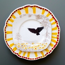 Nye design, tekster og motiver blander seg med sirlige blomster og slitte gullkanter på porselen fra gamle dager.