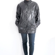 80-talls sort lærjakke, skinnjakke for kvinner, 1980s oversized jakke
