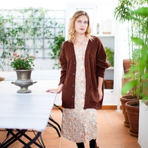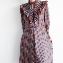 50% aprilSALG 70-talls rutete brun kjole, størrelse medium large, kjole med frynser og lange ermer, 1970s