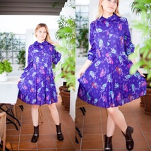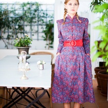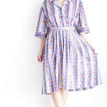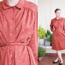 50% aprilSALG 70-talls mønstret blomsterkjole, kjole med belte, skjortekole