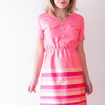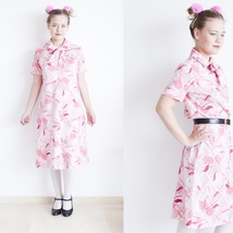 50% aprilSALG 70-talls rosa blomstrekjole med sløyfe