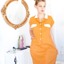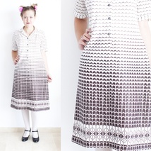 50% aprilSALG 70-talls minimalistisk hvit og brun kjole med skjortekrage