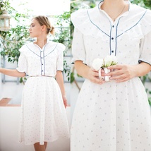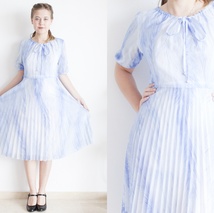 50% aprilSALG 80-talls blå og hvit kjole, sommerkjole