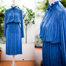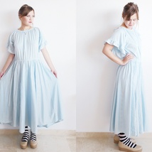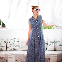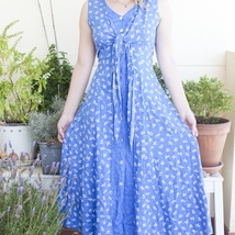50% aprilSALG Vintage blå sommerkjole, 90-talls lang kjole