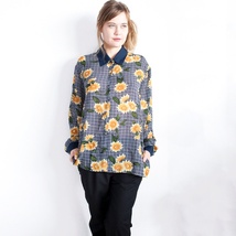 90-talls solsikke bluse, søt blå skjorte med lange ermer