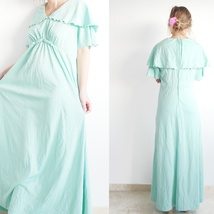 70-talls myntegrønn gudinnekjole, lang grønn kjole 70-tallet