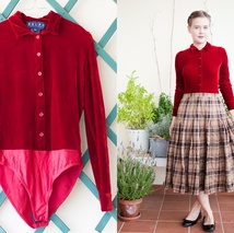 50% aprilSALG Ralph Lauren Fløyelsbody. Rød topp av fløyel, skjorte