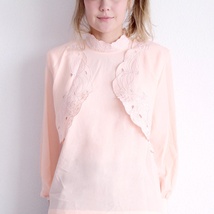 50% aprilSALG Nydelig rosa bluse, blondebluse med spesiell krage