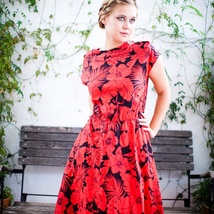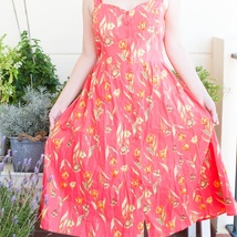 50% aprilSALG Vintage rød sommerkjole med blomster, rødrosaorange