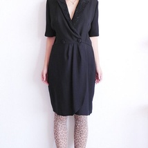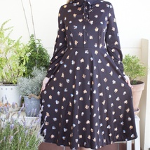 50% aprilSALG 70-talls sløyfekjole, sort kjole med blomster