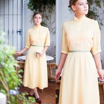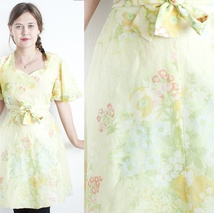 50% aprilSALG 60-talls minikjole, gul kort kjole, blomstermønster