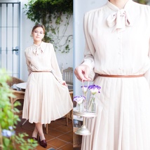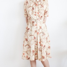 50% aprilSALG 70-talls beige kjole med belte, dresskjole, sekretær kjole, blomstermønster, retro