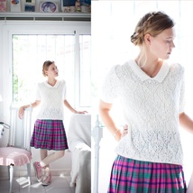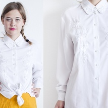 80-talls blondeskjorte, hvit bluse med blonder, lang-ermet skjorte, broderi