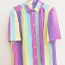50% aprilSALG 80-talls stripete skjorte, regnbuefarget, fargerike, regnbue, striper bluse