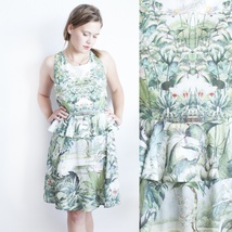 50% AprilSALG Grønn sommerkjole med naturmotiv, festkjole