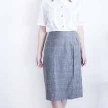 Klassisk vintageskjørt, high-waist skjørt, grått ullskjørt, kontorskjørt