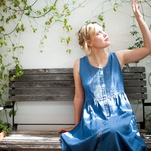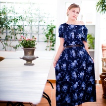 Blå blomstrete kjole, sommerkjole med blomster, halter neck