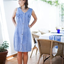 50% aprilSALG 80-talls himmelblå sommerkjole