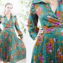 50% aprilSALG 70-talls blomstrekjole, fargerikt mønster