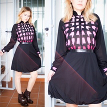 50% aprilSALG 70-talls abstrakt-mønstret kjole med glidelås foran