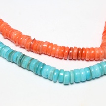 2 strenger skjellperler Heishiperler i lys blå og orange