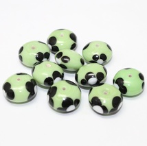 10 porselensperler i lysegrønt, svart og hvitt - Med blomstermotiv