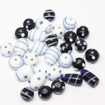 Lekre glassperler i blått og hvitt - perlemix