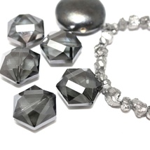14 mm grå glassperler - 1 streng
