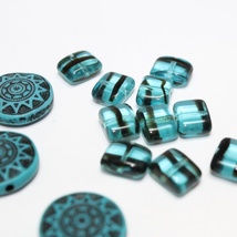 6 Vintage Fristende bærperler i blågrønn farge