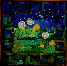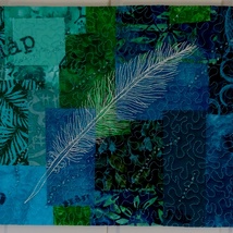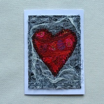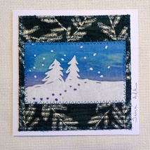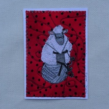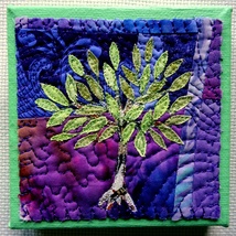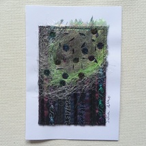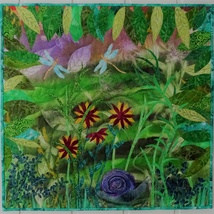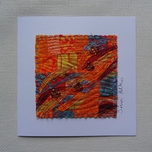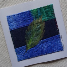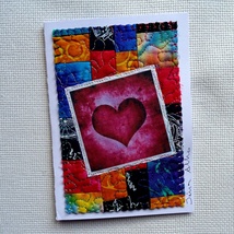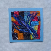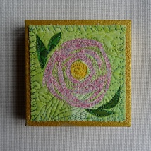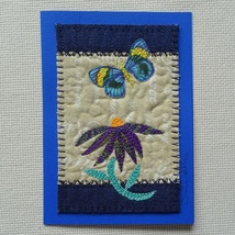 Kort, en liten art quilt med en blomst og en sommerfugl
