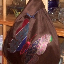 ✿ Liten veske / skoveske i thai-silke med applikert sommerfugl