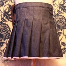 Foldeskjørt i jeans med rosa kant. 9-12 år