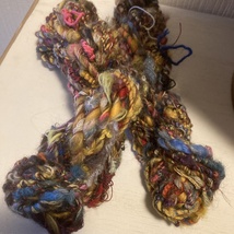I butikken min selger jeg håndspunnet garn, strikkede og vevde plagg og andre selvlagede ting. Håndspunnet garn er fint å bruke som effekt sammen med vanlig garn, eller til luer, halser, pannebånd e.l.