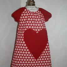 Rød og hvitblomstrete kjole m hjerte, str 3 år