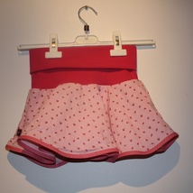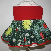 Snurreskjørt, rødt med hvite blomster, 4-8 år