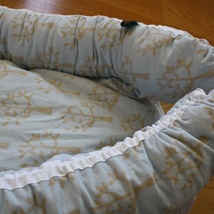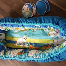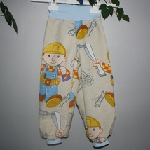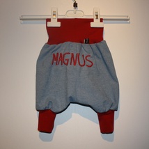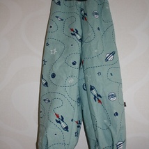 Bukse med navn, lys blå, sys på bestilling str 62-3 år