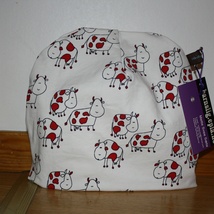 Lue med hvite marihøner, str 48/50 (ca 4-8 år) *SALG*