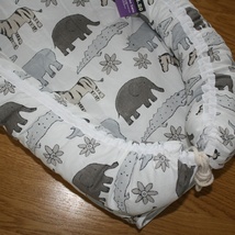 Lue med søte aper og elefanter, str 48/50 (3-7 år)