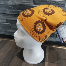Lue med søte løver, str 50/52 (fra ca 5-6 år)