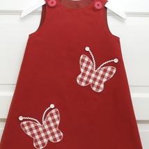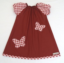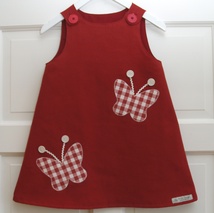 Rød redesign rynkekjole med sommerfugler, 6-7 år