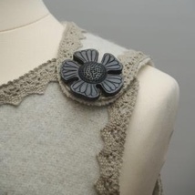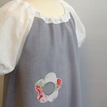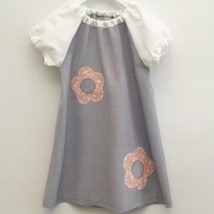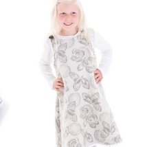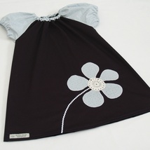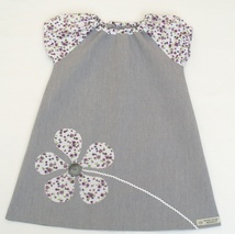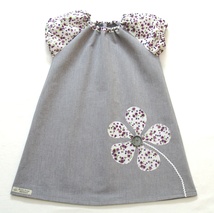 Grå redesign rynkekjole med stor blomst, 5-6 år