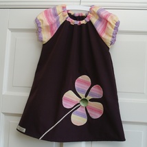 Mørk lilla redesign rynkekjole med glade striper, 3-4 år