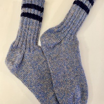 Str 44-46 Sokker blåmelerte med mørkblå striper