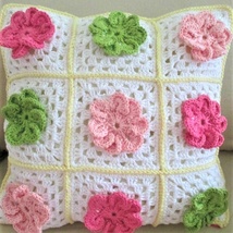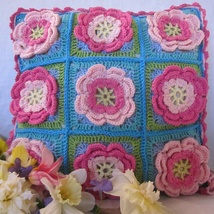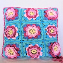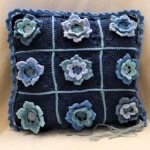JANUARSALG Heklet putetrekk m/blomster, i lys blå, mellomblå, aquamint, blå, støvet petrol, jeansblå og turkis.