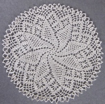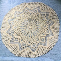 Heklet duk i naturfarge- diameter ca. 60 cm.