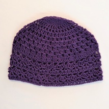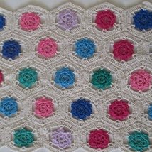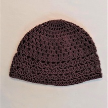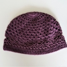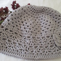 JANUARSALG! Heklet lue m/blomst.Nedsatt 50%.