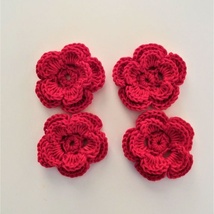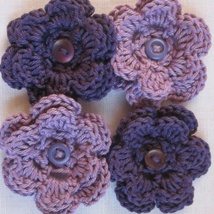 Sett m/ hekla blomster - 6 stk. i rosa og lilla, rødlilla og rosalilla.