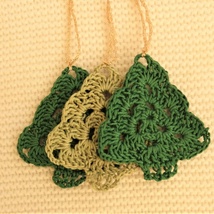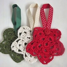 1 Sett med 3 hekla stjerner i grønn, rød og naturfarge.