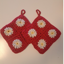 2 stk. Hekla grytekluter, doble, m/blomstermotiv. FØR KR 250,-
